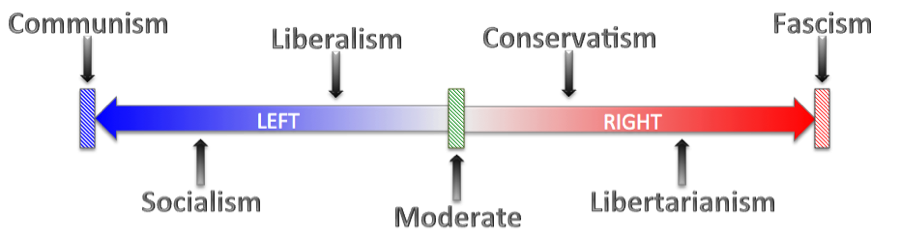 - Progressive (Left-wing, woke?) > Liberal Left > Mixed/Moderate > Right > Radical/Fanatical